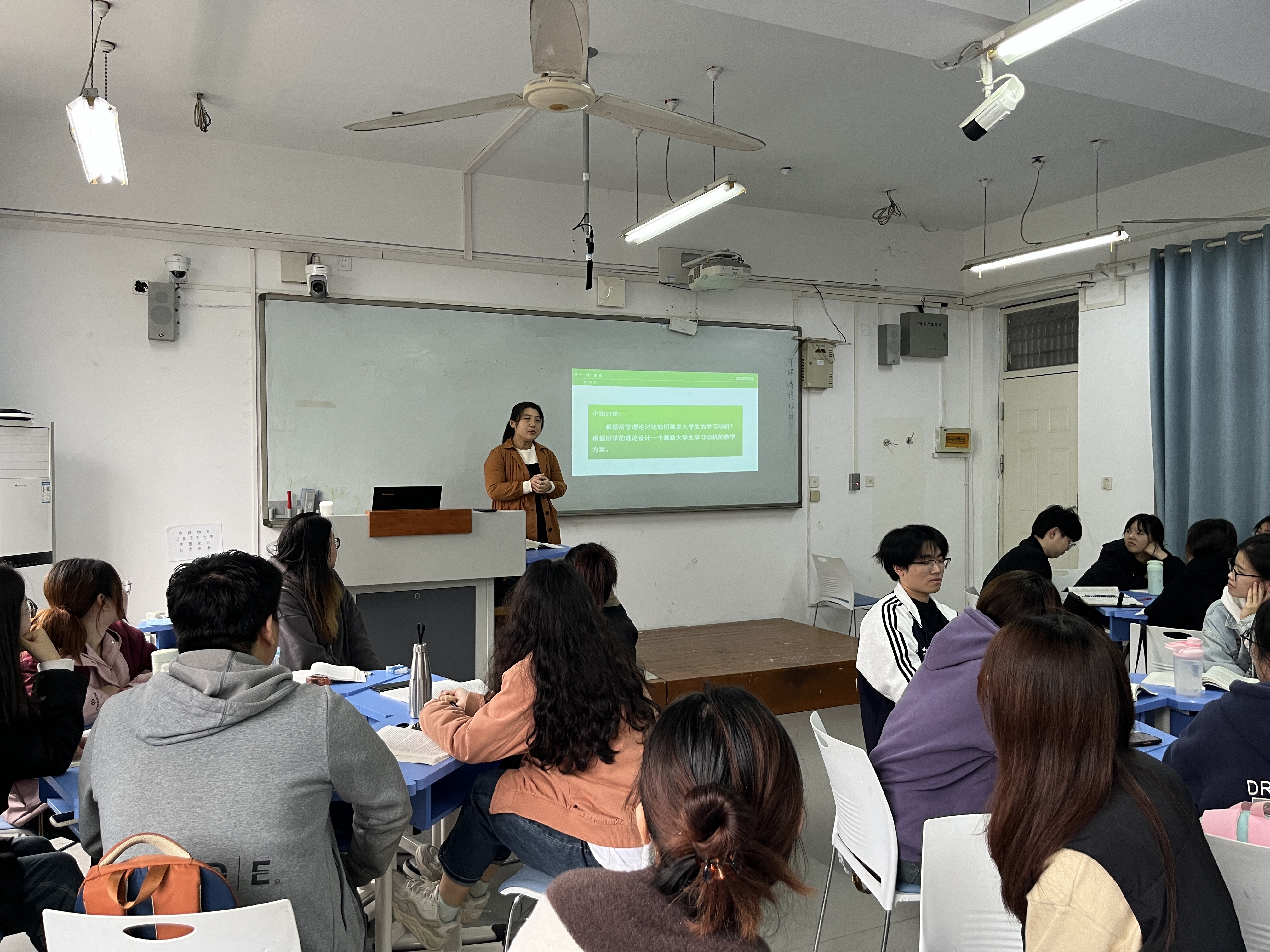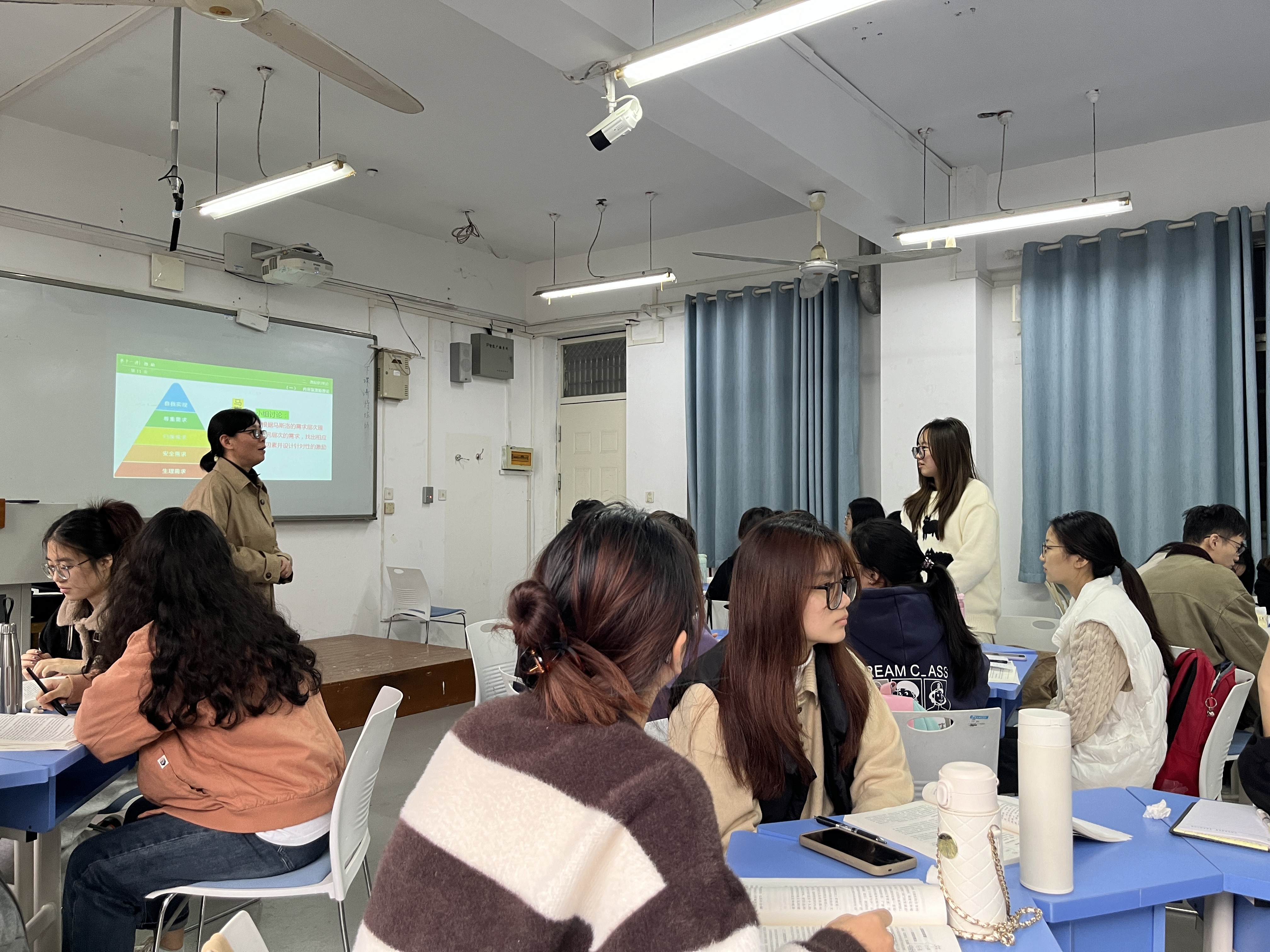 王晓莉采用案例分析及小组讨论的教学方法进行课堂教学。首先让员工结合个人学习和生活体验对上周所学知识进行了回顾和分享。然后以案例导入新课,让员工体会到需求对个人和国家发展,以及机构管理、营销的重要性,在此基础上让其理解马斯洛需求层次理论,体现了员工在课堂中的主体地位。在课程结束后通过学习通发布作业让员工进行知识梳理和巩固。同时,在课程中引入中国共产党的历史使命与奉献精神等内容,实现对员工的价值引领。