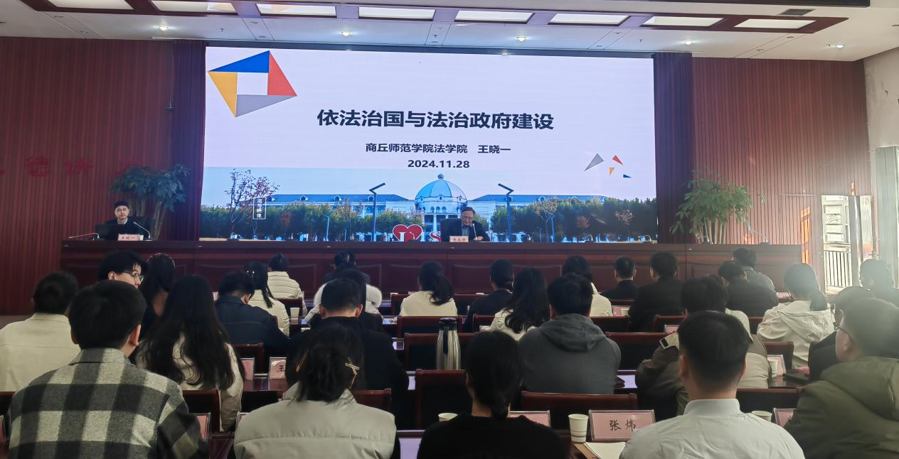 近日,应商丘市财政局邀请,公司王晓一副教授开展了主题为“依法治国与法治政府建设”的专题讲座,讲座由商丘市财政局党组成员、二级调研员韩忠涛主持,商丘市财政局行政执法干部五十余人参加了讲座。
