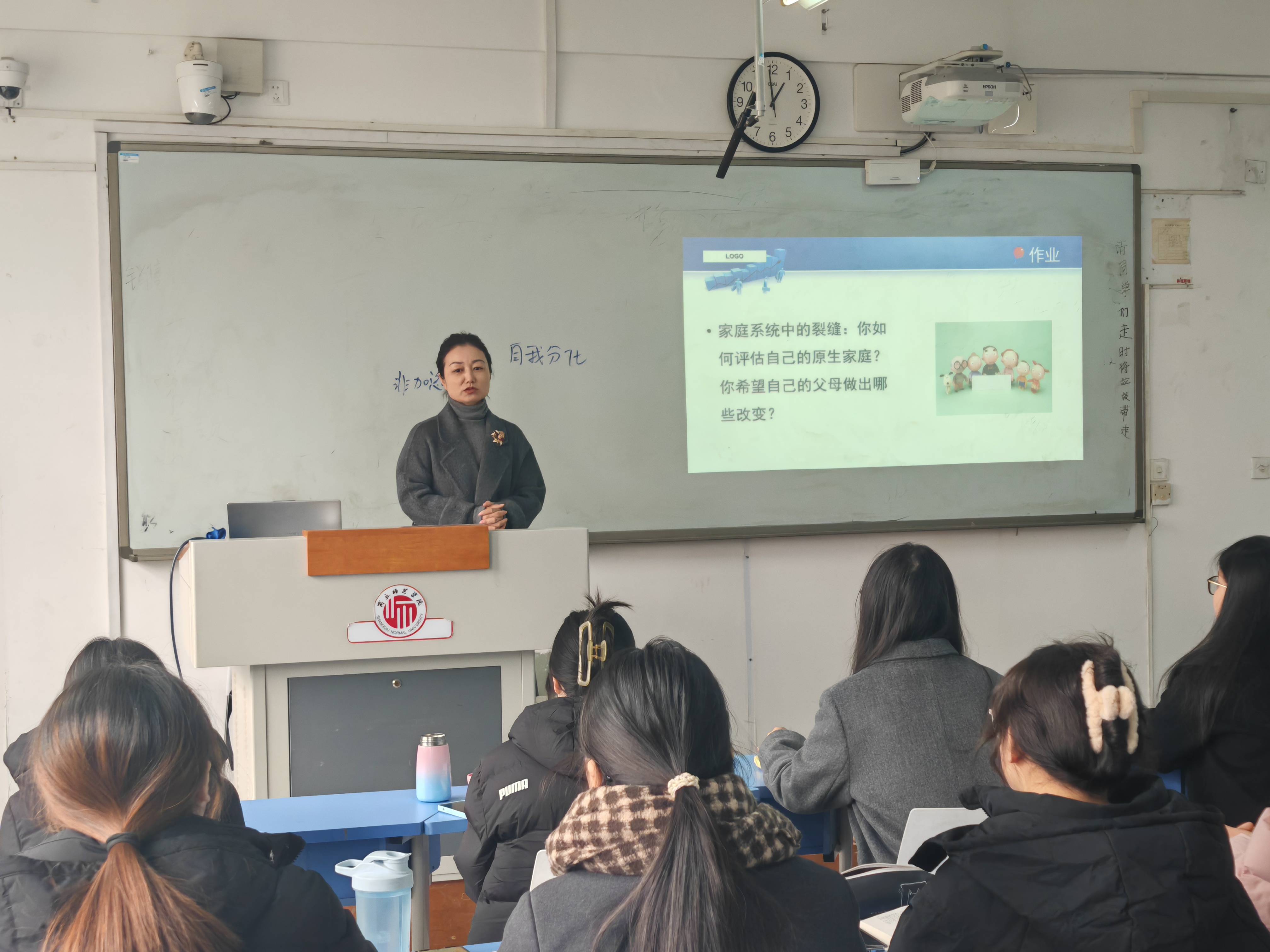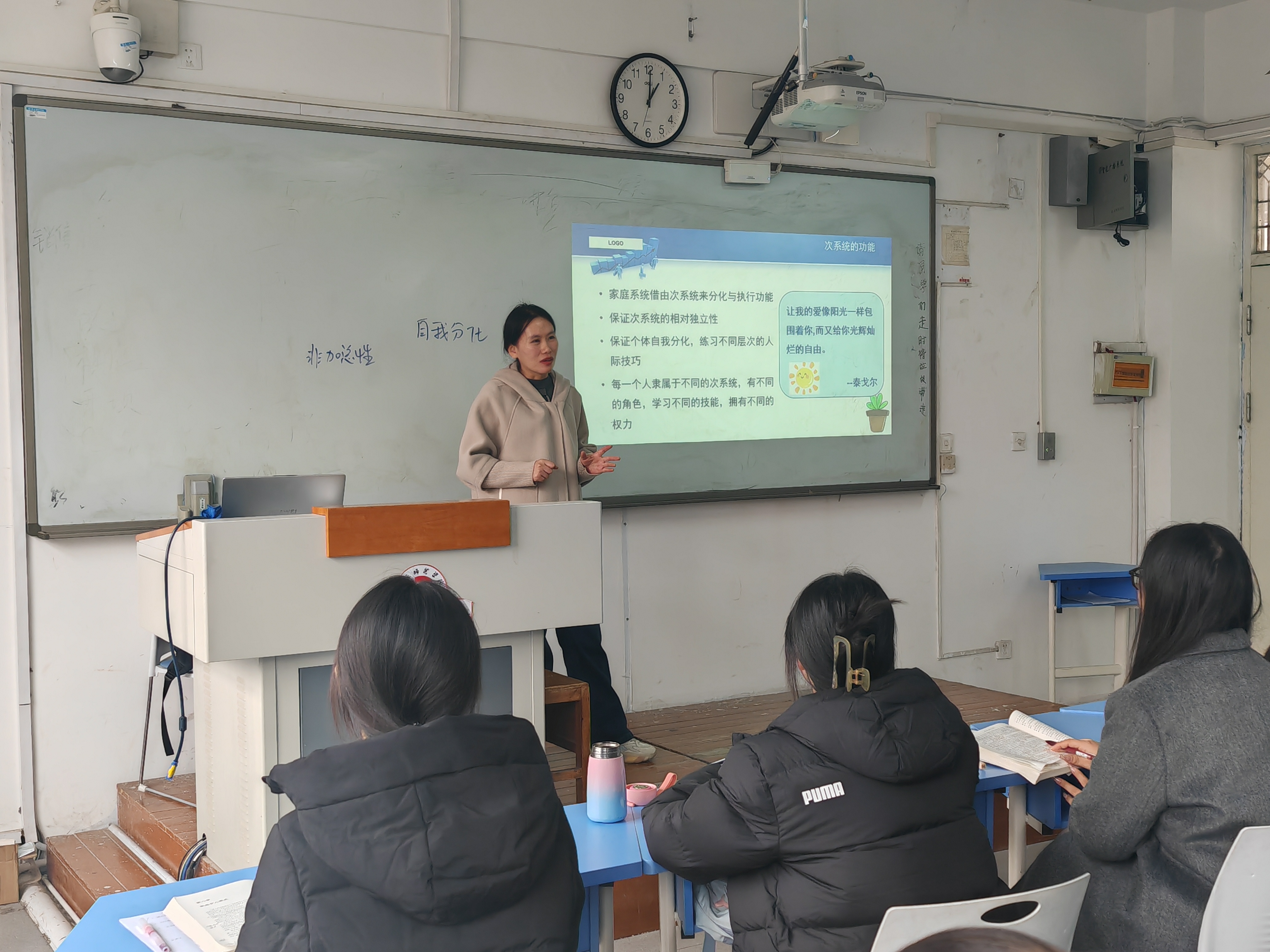 张璐璐首先检查了员工对新课知识点的预习和掌握情况,之后,通过案例导入新课,让员工体会到家庭结构的重要性,并带领员工重点学习了结构式家庭治疗的主要观点、理论假设和基本概念等内容。通过学习通主题讨论、案例分析等方式,加深了员工对知识的体验并引导员工在实际生活中运用所学。课程最后,布置了拓展作业,让员工对所学技能进行练习和巩固。课程过程中,张璐璐鼓励员工承担起家庭社会工作者应有的使命担当,对员工进行了价值引领。