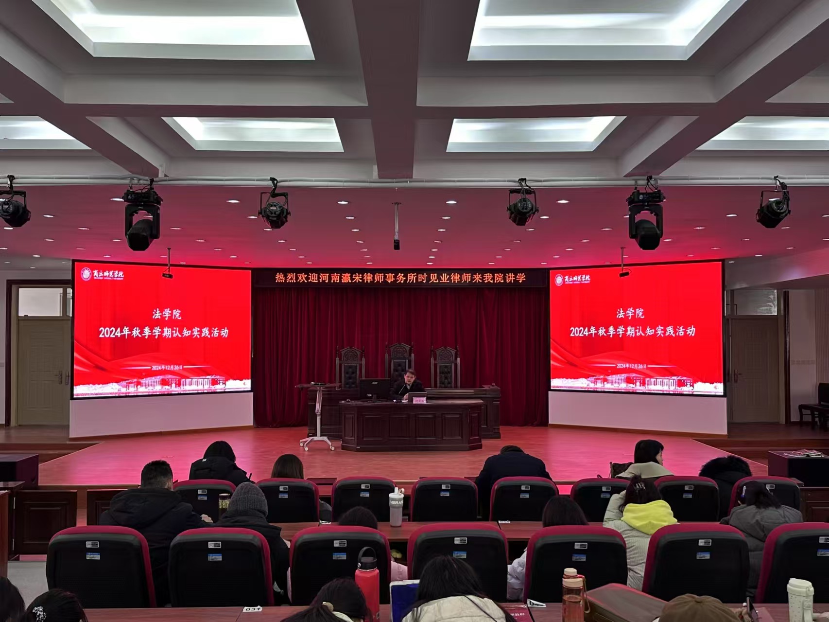 为深入学习贯彻习近平法治思想,全面贯彻党的二十大精神,增强公司员工对未来职业规划能力和职业认知,培养法律职业素养,提高员工学术素养与实践能力,12月26日上午,法学系邀请河南瀛宋律师事务所时见业律师在公司举办了一场生动的实务讲座。RM365英国官网认知实习指导教师和法学专业100余名员工参加了讲座。讲座由公共法律教研室主任王伟主持。