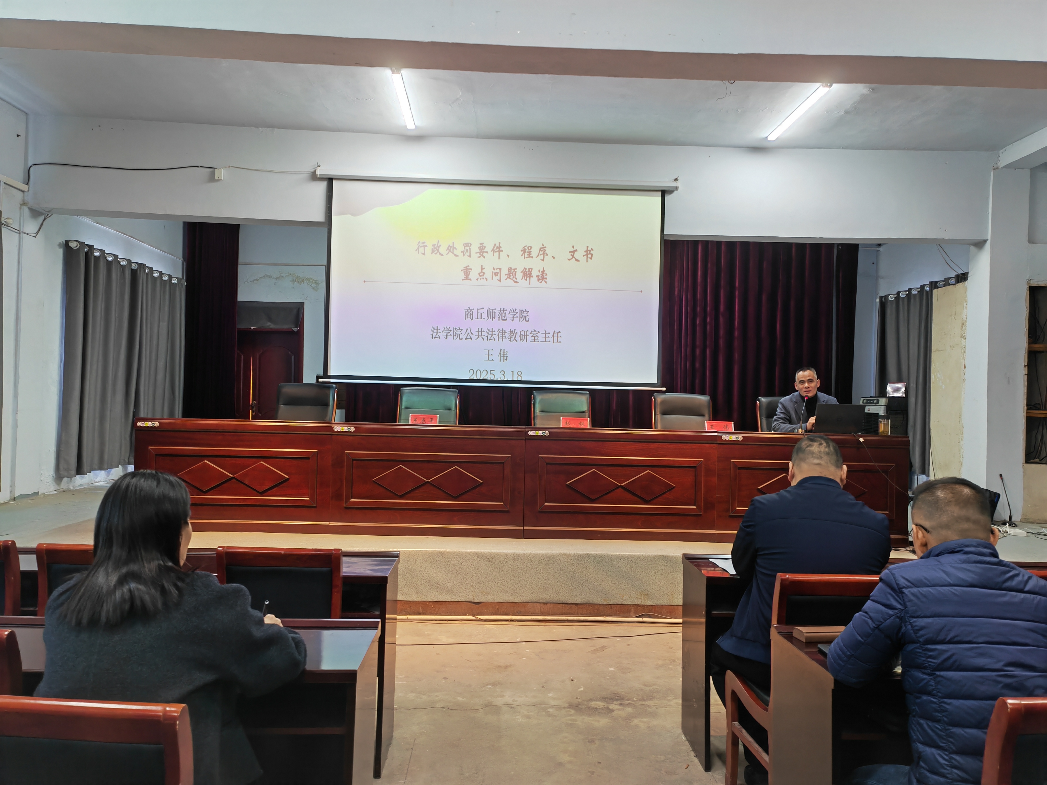 为深入学习贯彻习近平法治思想,增强梁园区各级党员领导干部和基层执法人员法治思维和法治意识,提升依法决策、依法管理、依法行政的能力和水平。3月18日下午,公司公共法律教研室主任王伟老师应邀赴梁园区委党校,在梁园区党员领导干部法治专题培训暨乡镇街道行政执法人员法律知识培训班上,作了题为《行政处罚要件、程序和文书重点问题解读》的讲座。梁园区主要部门及主管行政执法副职、乡镇(街道)党政主要负责人及执法人员参加了培训。梁园区司法局副局长赵银主持培训会。