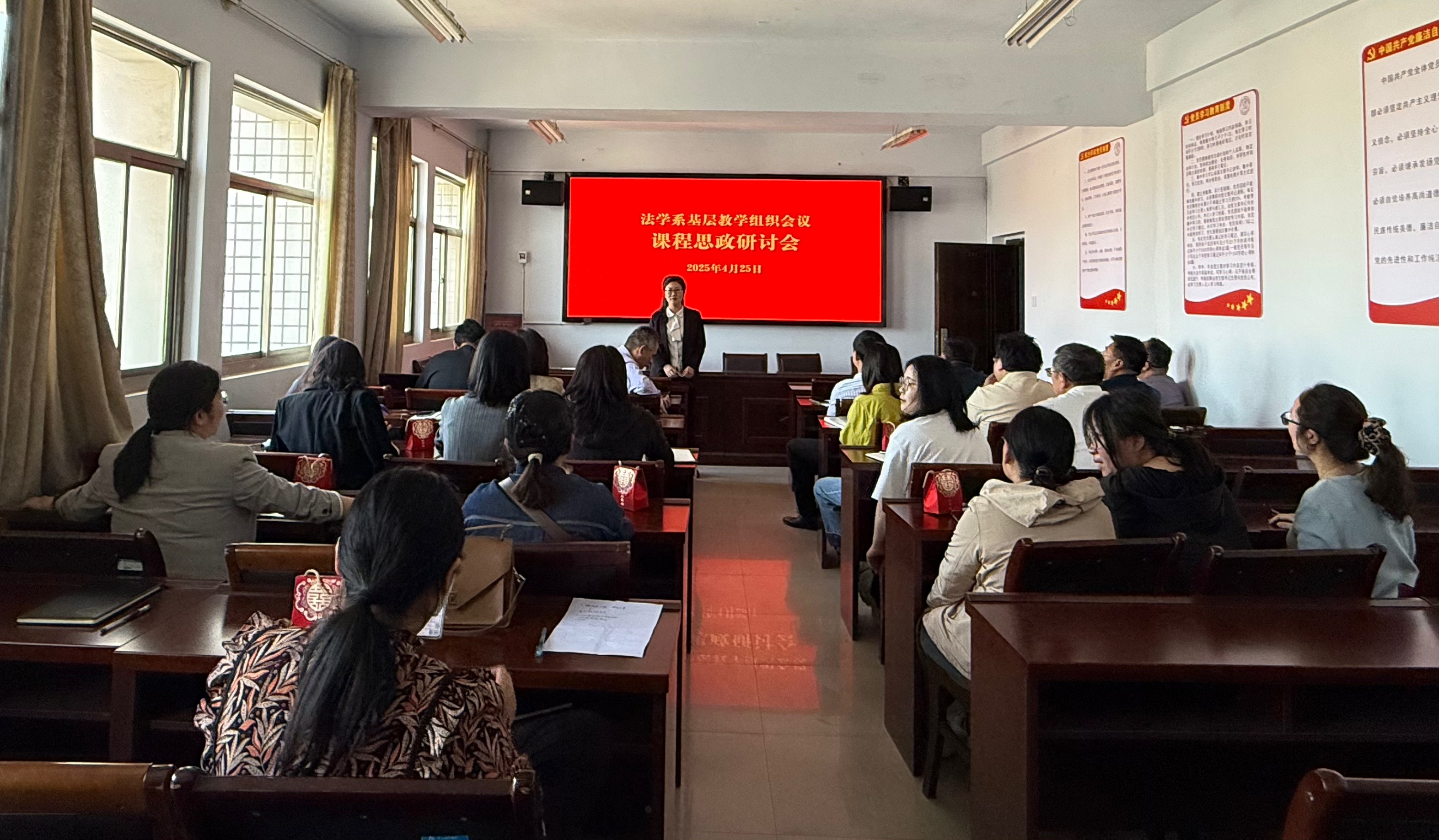4月25日下午,法学系在应天楼717会议室召开基层教学组织会议暨课程思政研讨会,法学系全体教师参加会议,会议由法学系主任李祎主持。