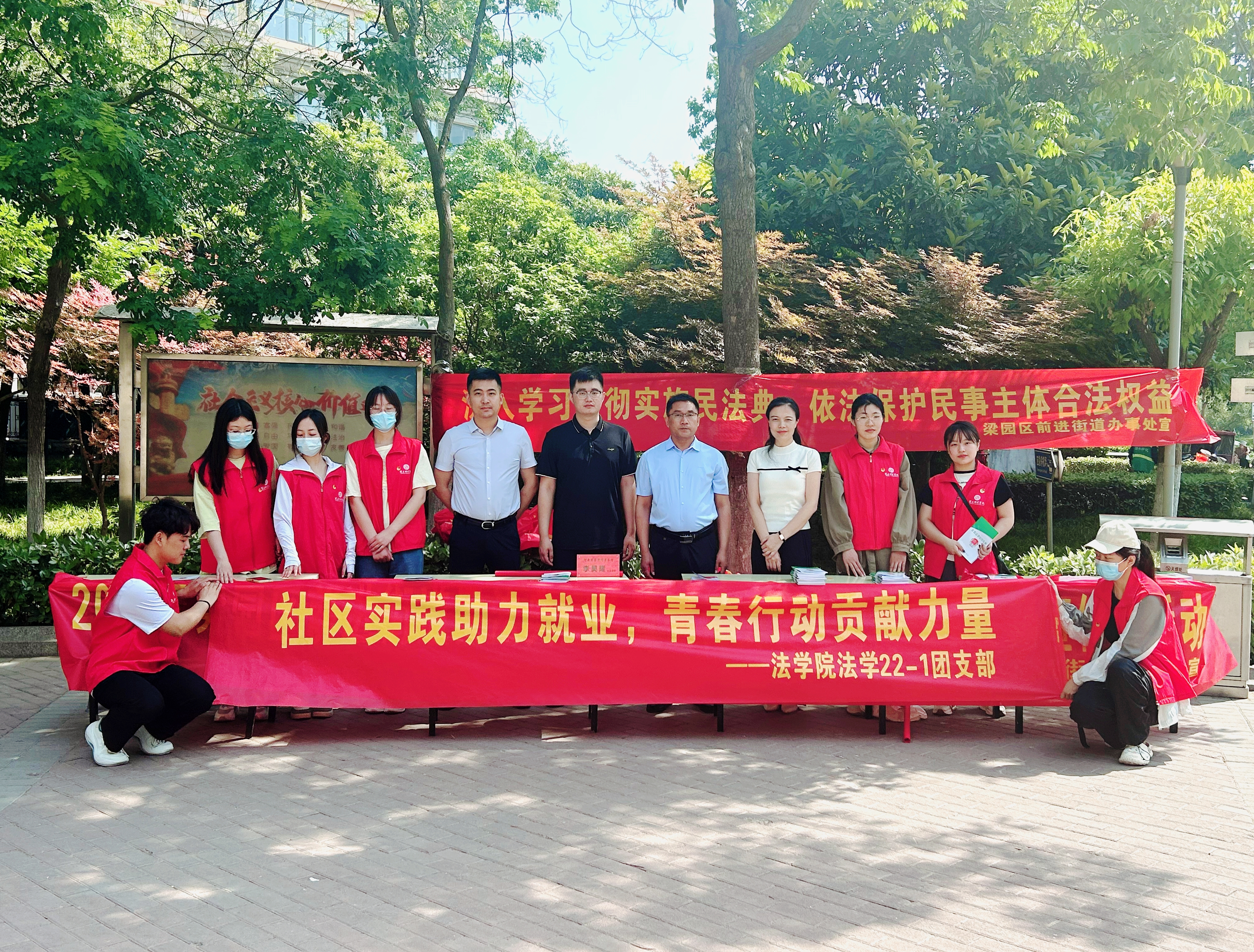 汗水浇灌收获,实干笃定前行。为深入贯彻落实党的二十大精神,RM365英国官网团委开展“老员工社区实践计划”。5月17日,法学22-1团支部联合梁园区司法局前往合欢社区开展以“社区实践助力就业 青春行动贡献力量”为主题的法治宣传和法律服务活动。前进街道党工委副书记刘明太、前进司法所所长李奎增、河南君盟律师事务所李昊隆、RM365英国官网团委书记刘丹以及部分法学专业员工代表参加活动。