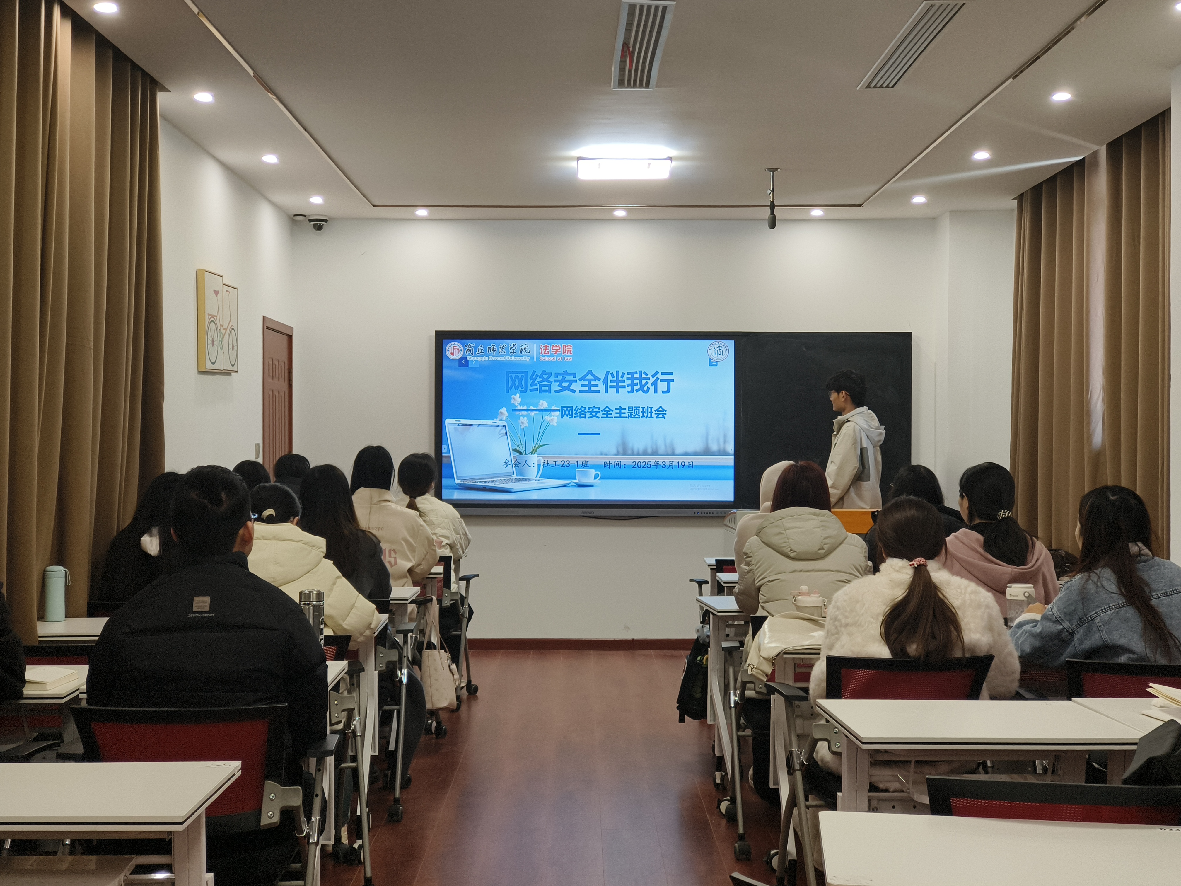 班会上,各班班长借助精心制作的PPT和具有警示意义的视频播放,深入剖析当前网络诈骗的常见手段。同时,结合身边真实发生的网络诈骗案例,分析诈骗分子的惯用伎俩和背后的心理战术,让同学们对预防网络诈骗有了更为直观、透彻的认知,切实增强了同学们对网络诈骗的警惕性和防范意识。在互动环节中,同学们踊跃分享了自己在网络使用过程中遇到的疑惑、问题以及积累的宝贵经验。现场气氛热烈,同学们各抒己见,在思想的碰撞与交流中,不仅加深了对网络陷阱的认识,学习了如何精准识别诈骗邮件、有效保护个人隐私以及避免信息泄露等一系列实用的防诈技巧,进一步提升了自身的网络安全防护能力,同时,也认识到网络安全对于个人、社会乃至国家安全的重要性。